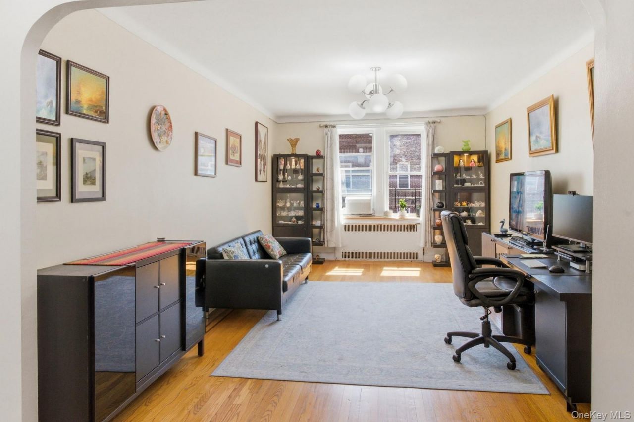 This expansive 2-bed/2-bath top-floor unit seamlessly blends classic pre-war character such as arched doorways and hardwood floors with thoughtful updates creating a warm and welcoming home. Enter a spacious foyer with 2 closets that gracefully lead to a living room bathed in natural light all day long.Adjacent to the living room is an eat-in kitchen with double exposure which has been recently updated with stainless steel appliances and expansive storage. The separate dining area has ample room for seating for 6.Set apart from the living space is the king-size primary bedroom with its en-suite three-fixture windowed bath containing a new vanity and glass-enclosed, walk-in shower. Three large windows with double exposure and a deep closet complete the primary suite.The second queen sized bedroom has two large windows and offers a large closet. The second windowed bath is off-suite and is adorned with a new vanity, offering ample storage, and a combination tub and shower.Romney Hall is a well-maintained cooperative in the heart of Forest Hills. The building's Queens Boulevard location offers easy access to the E and F express subway lines, the Long Island Rail Road, and an array of express buses for an easy commute in and out of Manhattan and Long Island. Nearby Austin Street offers an abundance of dining, boutique shopping, and cafes. Enjoy the playgrounds at nearby Ehrenreich-Austin Park and the year-round concerts, sporting activities, and an Olympic-size swimming pool at the Westside Tennis Club. A short distance away, explore the natural settings of Queens through the hiking trails at Forest Park. Other nearby attractions include the Queens Zoo and Botanical Garden, New York Hall of Science, Westinghouse Time Capsules, Fountain of the Planets, Queens Theatre, Fantasy Forest Amusement Park, the USTA Billie Jean King National Tennis Center, and Forest Hills Stadium.